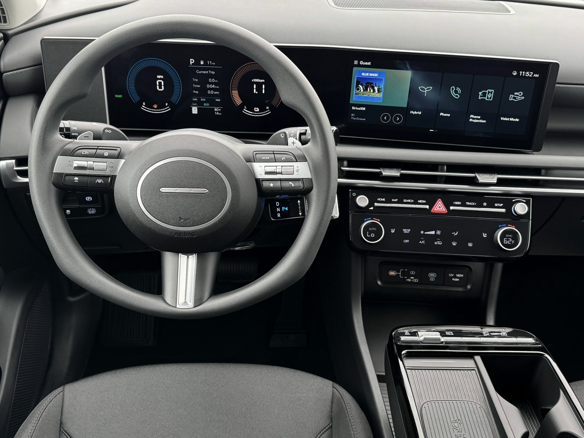 - Radio: AM/FM/HD Audio System -inc: 12.3" color touchscreen display, 6 speakers, SiriusXM satellite radio system (3-month trial subscription), wireless Apple CarPlay and Android Auto integration, controller OTA update capability, Blue Link connected car system and USB connectivity